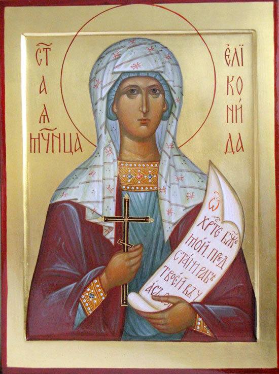 Ἁγία Μάρτυς Ἑλικωνίς γεννήθηκε στή Θεσσαλονίκη. Οἱ χρονικές συντεταγμένες τοῦ βίου της, σύμφωνα μέ τό Συναξάριό της, τοποθετοῦνται κατά τούς χρόνους τοῦ βασιλέως Γορδιανοῦ Γ’ (238 – 244 μ.Χ.) καί Φιλίππου. Μαρτύρησε στήν Κόρινθο ἐπί τοῦ ἡγεμόνος Περινίου, ὅπου προτίμησε νά ὁμολογήσει τόν Χριστό καί νά ὑποστεῖ τό μαρτύριο, παρά νά θυσιάσει στά εἴδωλα. Οἱ τύρρανοί της στήν ἀρχή τῆν φυλάκισαν· τό μαρτύριό της ἄρχισε ὅταν τῆς ἔδεσαν τά πόδια σέ ζυγό βοδιῶν καί τήν ἄφησαν νά ποδοπατεῖται· λύθηκε ὅμως θαυματουργικά. Μετά ἀπό αὐτό τήν ἔριξαν σέ πίσσα καί ἄσφαλτο, ἀπ’ ὅπου ὅμως καί πάλι ἐξῆλθε ἀβλαβής. Στή συνέχεια οἱ δήμιοί της θέλησαν νά τήν προσφέρουν θυσία στούς θεούς, γι’ αὐτό τῆς ξύρισαν τήν κεφαλή καί τήν ἔριξαν στή φωτιά· ὅμως αὐτή ὄχι μόνο δέν ἔπαθε τίποτε, ἀλλά ἀπεναντίας, μέ τήν δύναμη τῆς προσευχῆς, κατόρθωσε νά καταρίψει τά ξόανα τῆς Ἀθηνᾶς, τοῦ Διός καί τοῦ Ἀσκληπιοῦ πού βρίσκονταν στό ναό. Στή συνέχεια τῆς ἔτεμαν τούς μαστούς καί τήν φυλάκισαν. Ὅταν ὁ Ἀνθύπατος Ἰουστίνος διαδέχθηκε τόν ἡγεμόνα Περίνιο στήν Κόρινθο, διέταξε νά ὁδηγηθεῖ μπροστά του ἡ Ἑλικωνίς, ἡ ὁποία συνέχιζε νά ὁμολογεῖ τόν Χριστό. Ὁ ἡγεμόνας τότε διέταξε νά ριφθεῖ στήν κάμινο, ὅπου ὅμως ἡ φλόγα δέν τήν ἄγγιξε. Ἑβδομήντα στρατιῶτες τήν βασάνισαν· ξάπλωσαν τήν Ἁγία πάνω σέ πυρακτωμένο χάλκινο κρεβάτι, ἀλλά οἱ Ἄγγελοι Μιχαήλ καί Γαβριήλ τῆς συμπαραστέκονταν καί θεράπευαν τίς σάρκες της, πού καίγονταν. Οὔτε ὅμως καί τά θηρία τήν ἀκούμπησαν, ἂν καί κατέφαγαν ἑκατόν εἴκοσι ὑπηρέτες. Ἔτσι ὁ ἡγεμόνας διέταξε τή θανάτωση τῆς Ἁγίας, ἡ ὁποία «διά ξίφους τμηθεῖσα, πρός Κύριον στεφανοφόρος ἀνῆλθε».