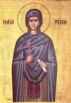 Θάλαμον λιποῦσα τόν νυμφικόν, ξενοτρόπως Μῆτερ, ἠκολούθησας τῷ Χριστῷ, ᾧ καί νυμφευθεῖσα, τῇ ξένῃ βιωτῇ σου, ὦ Ξένη πανολβία, ἡμῶν μνημόνευε.