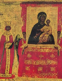 Δωρεῶν τῶν ἐνθέων οὖσα ἐπώνυμος, τήν Ἐκκλησίαν φαιδρύνεις βασιλικαῖς δωρεαῖς, ὡς θεόγλυπτος εἰκών θείας φρονήσεως· τῶν γάρ Εἰκόνων τῶν σεπτῶν, τήν τιμήν ὡς σχετικήν, ἐτράνωσας Θεοδώρα, τῶν Βασιλίδων ἀκρότης, τῶν Ὀρθοδόξων ἐγκαλλώπισμα.