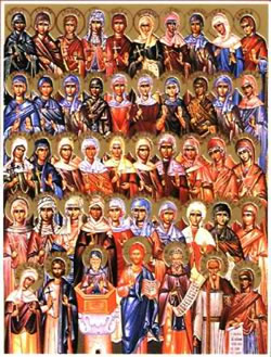 Ἀδαμαντίνη, Καλλιρόη, Χαρίκλεια, Πηνελόπη, Κλειὼ, Θάλεια, Μαριάνθη, Εὐτέρπη, Τερψιχόρη, Οὐρανία, Κλεονίκη, Σαπφώ, Ἐρατώ, Πολύμνια, Δωδώνη, Ἀθηνᾶ, Τρωάδα, Κλεοπάτρα, Κοραλία, Καλλίστη, Θεονόη, Θεανώ, Ἀσπασία, Πολυνίκη, Διόνη, Θεοφάνη, Ἐρασμία, Ἑρμηνεία, Ἀφροδίτη, Μαργαρίτα, Ἀντιγόνη, Πανδώρα, Χάϊδω, Λάμπρω, Μόσχω, Ἀρηβοΐα, Θεονύμφη, Ἀκριβῆ, Μελπομένη, Ἐλπινίκη καὶ Ἀμμοῦν ὁ διδάσκαλος αὐτῶν.