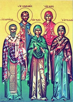 ἱ Ἁγίες Φωτώ, Παρασκευή, Κυριακή καί Ἀνατολή τελειώθησαν διά ξίφους καί ἡ Ἁγία Φῶτις ἐτέθηκε σέ δύο δένδρα, τά ὁποία ἀπολυθέντα τήν διέσχισαν στά δύο.